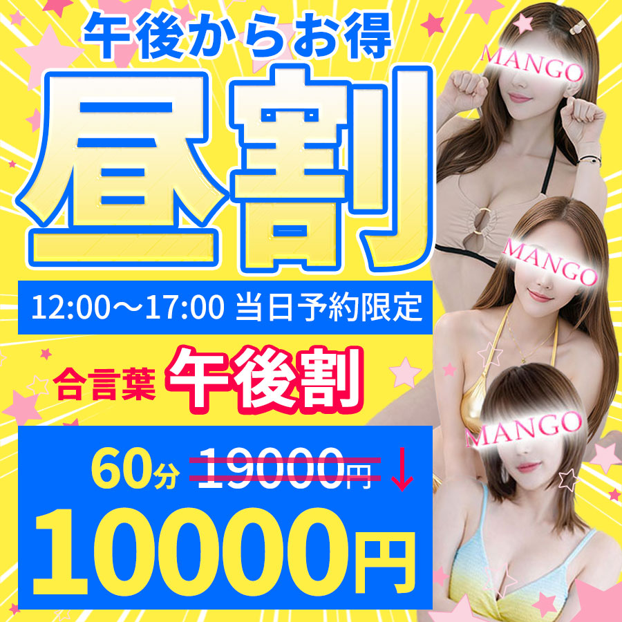電話受付にお伝えください12:00~17:00 当日予約限定午後割 価格一覧ご利用条件・12:00~17:00の【当日予約】のみ適用となります